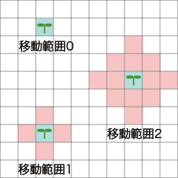 ※草の生え方は「基本座標+移動可能範囲」による